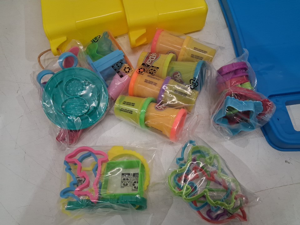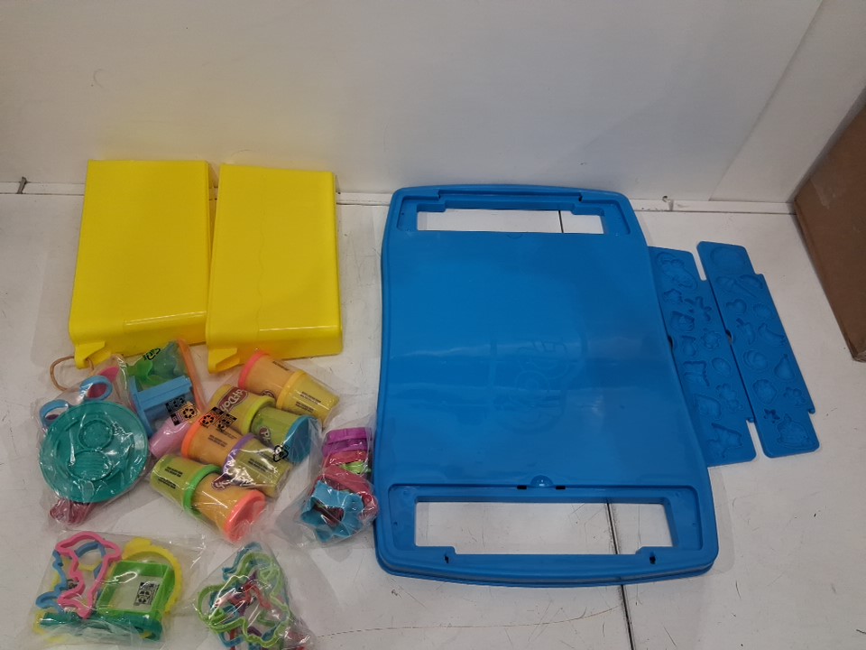 PLAY-DOH PLAY 'N STORE KIDS PLAY TABLE FOR ARTS AND CRAFTS ACTIVITIES WITH 8 NON-TOXIC PLAY-DOH CANS - 2OZ - BLUE/YELLOW (MODEL: B9023AF1)
