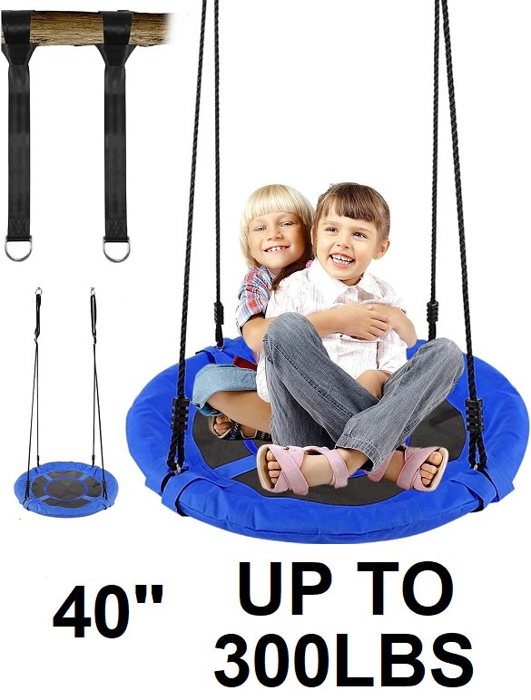 Kinspory adjustable height round hammock swing for kids - 40" - up to 300lbs - Blue/black