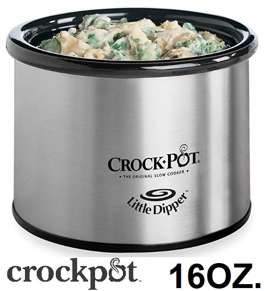 CROCK POT CLASSIC LITTLE DIPPER WARMING POT WITH LID - 16oz CAPACITY - STAINLESS STEEL/BLACK (MODEL:32041-BC)