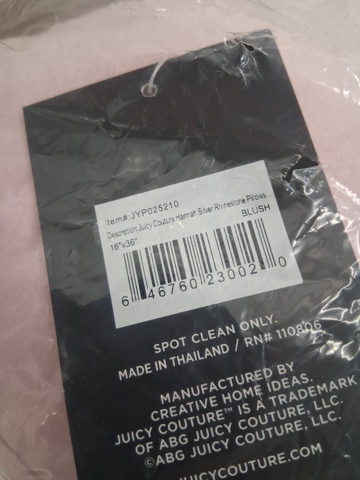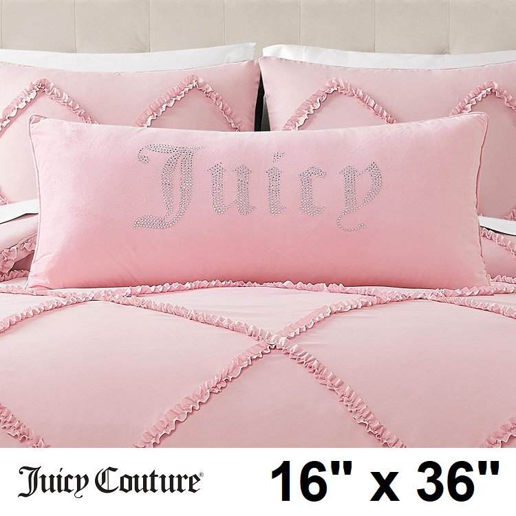 juicy Couture Silver Rhinestone Decorative velvet hannah throw Pillow - 16" x 36" - Light Pink/silver (model: jyp025210