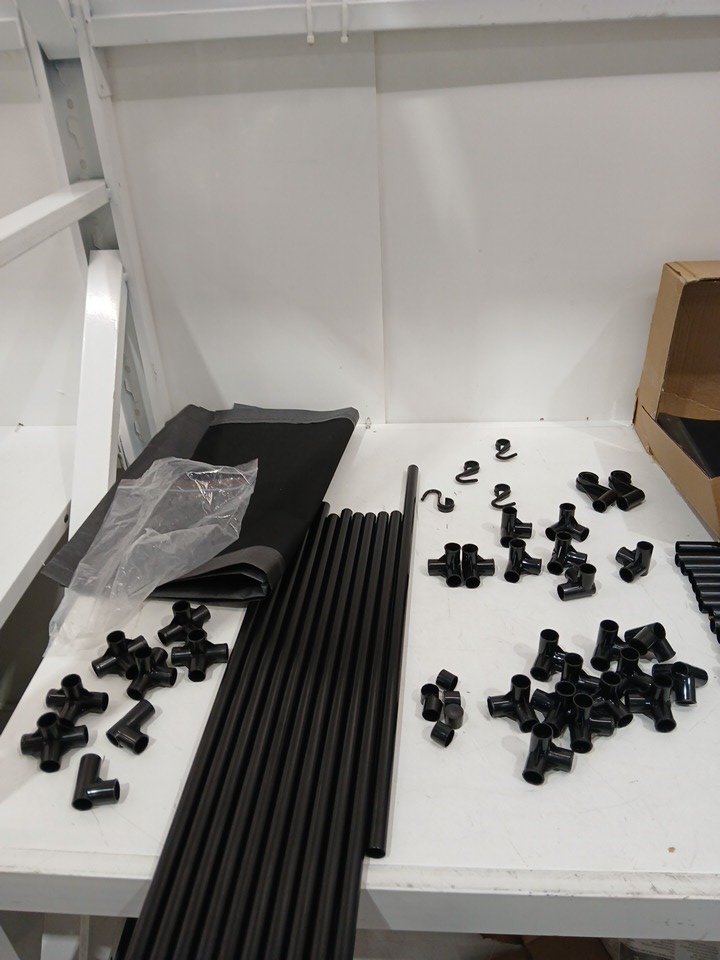 Missing the door rod holding it. Shelves and main unit can still be assembled.