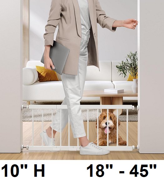 EVERLY METAL STEP OVER DOG GATE - FOR SMALL PETS - 10" HEIGHT - 18" - 45" - WHITE