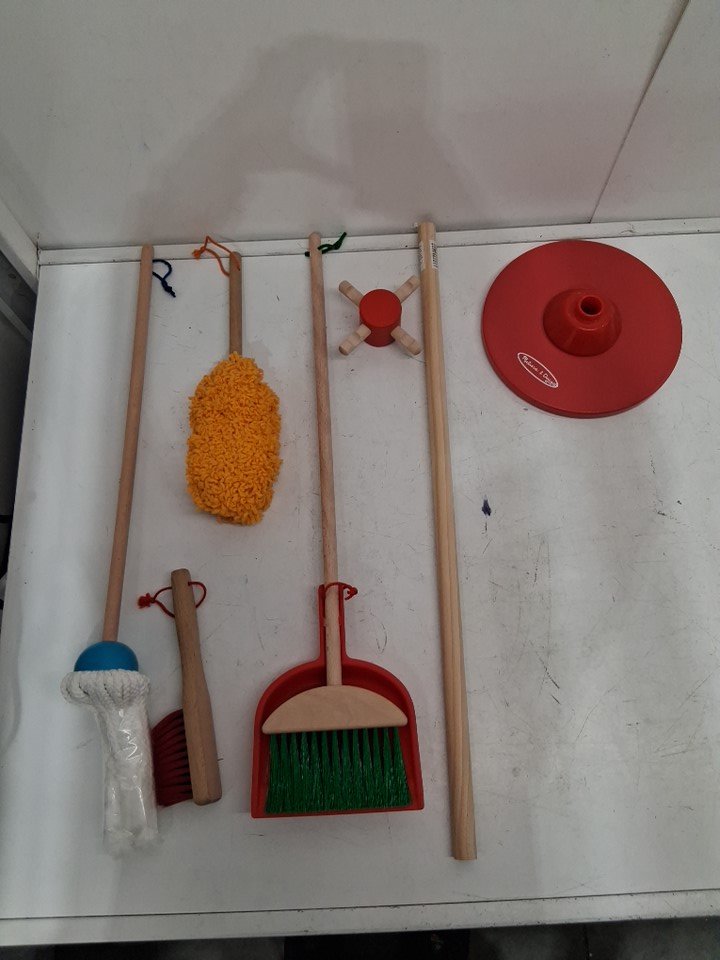 6PC MELISSA & DOUG LET’S PLAY HOUSE! DUST! SWEEP! MOP! PRETEND PLAY SET - KID-SIZED With BROOM, MOP, DUSTER, BRUSH, DUSTPAN, STORAGE STAND - MULTICOLOUR (MODEL: 96049)