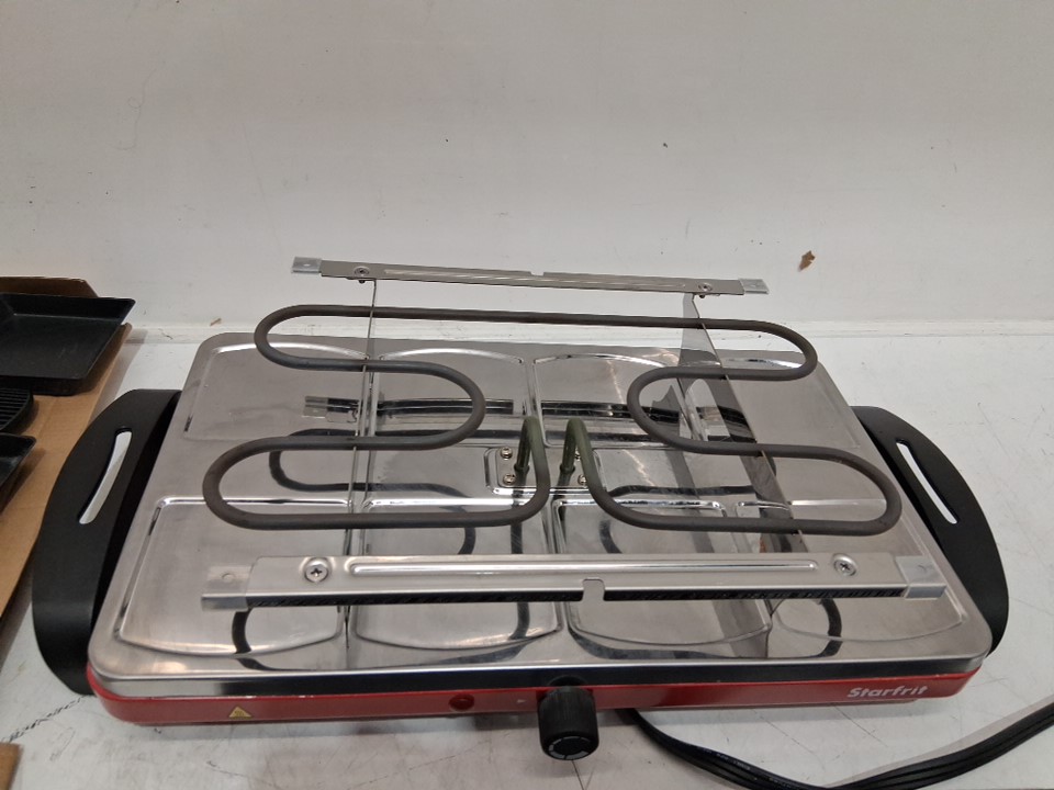 Item has some buildup/marks on the grill from previous use and is missing all the scrapers. Tested for basic power.