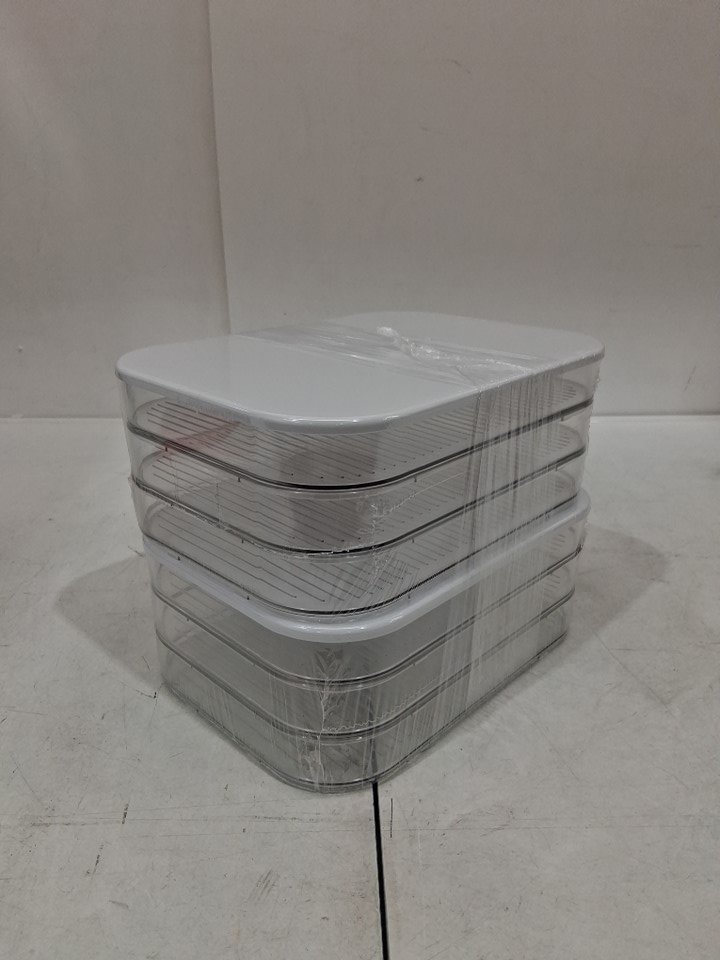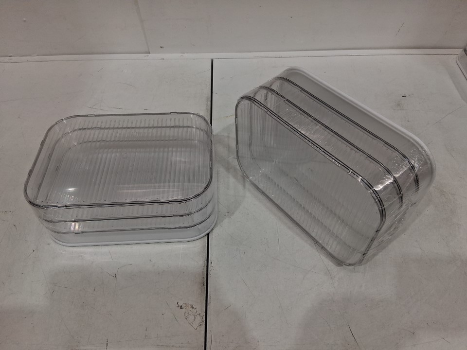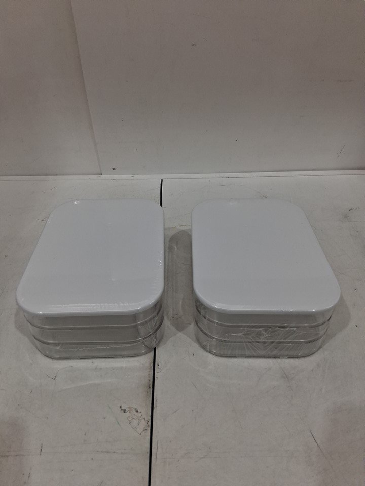 2 (4PC) Food Storage Container with 3 Compartments AND LID - 9" x 6.25" - CLEAR/WHITE