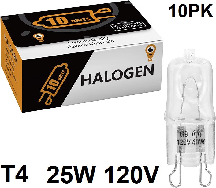 10pk Jessar Glass Halogen Replacement Light Bulb - T4 25W 120V - clear warm white (model: 1-62014)