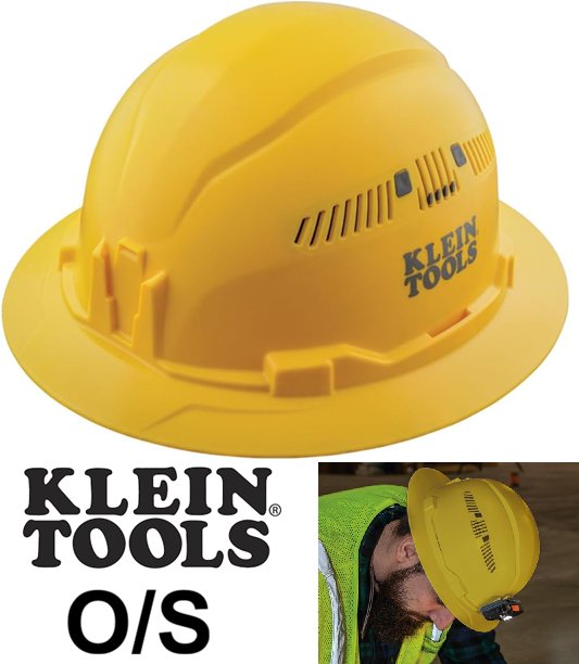 KLEIN TOOLS Vented Full Brim Style HARD HAT - ONE SIZE - YELLOW (MODEL:60262)