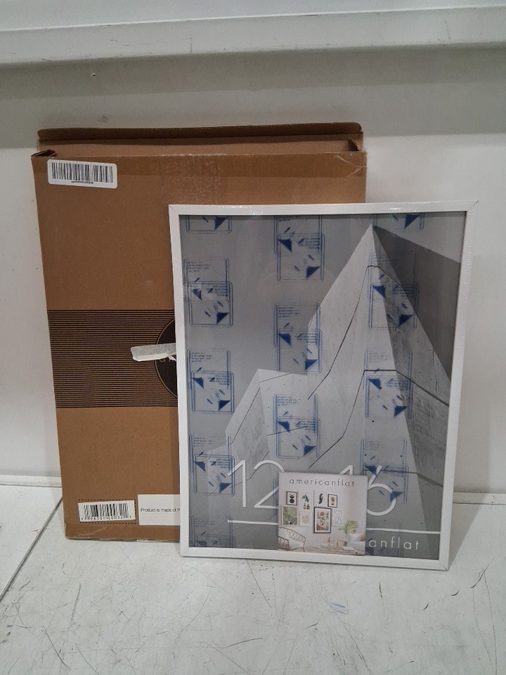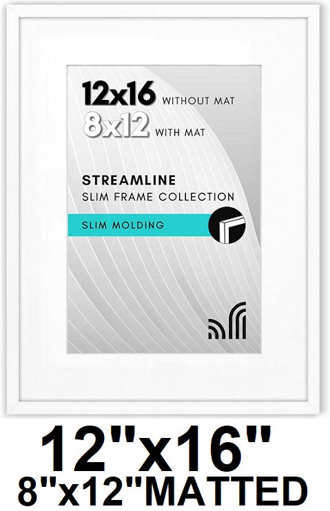 american flat picture frame with plexiglass - 12"x16" or 8"x12" matted - white