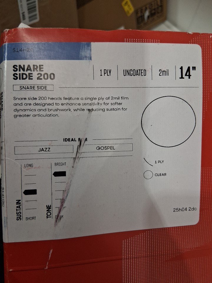 Evans Clear 200 Snare Side Drum Head - 14" (MODEL:S14H20)