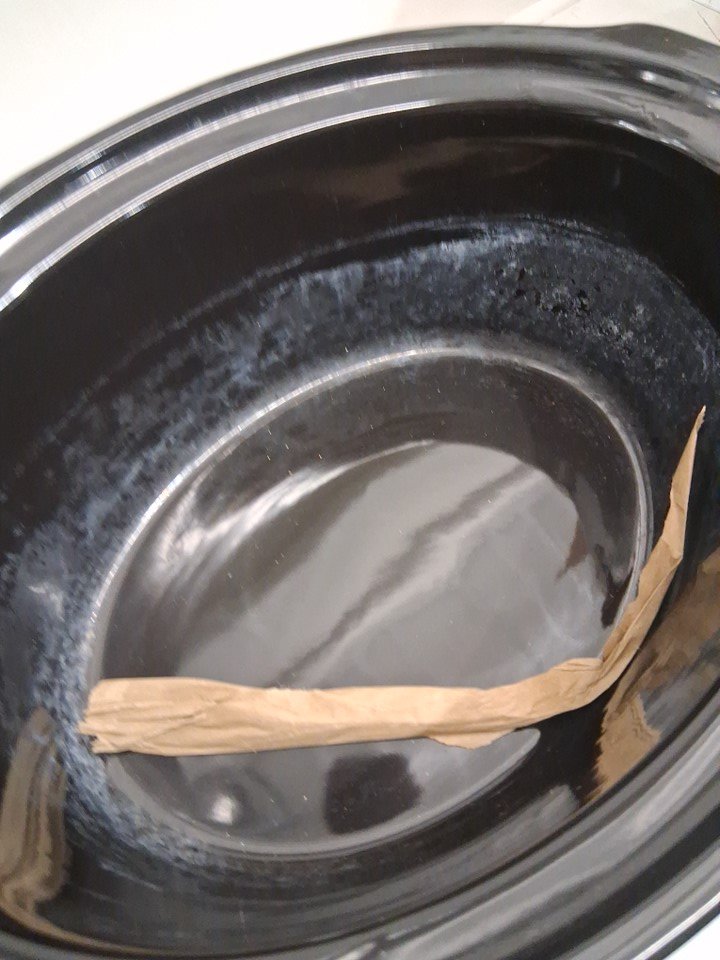 light stain inside crockpot, lightly dented