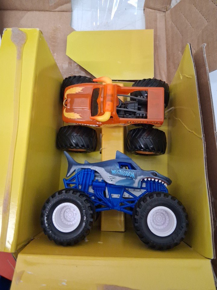 note some pieces are still factory banded together, one truck is loose and one is still sealed