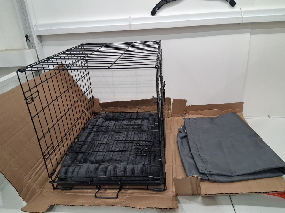 PET TRAINING KENNEL WITH PET BED - 17" X 19" X 24" - BLACK/GREY