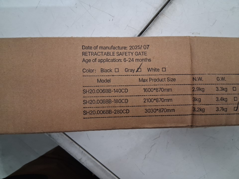 retractable baby mesh safety gate - 55" x 32" - grey (model: sh20.006bb-280cd)