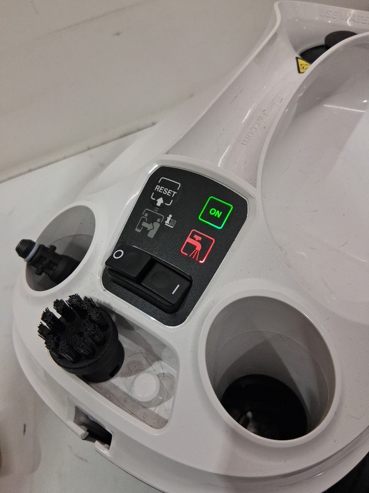 Tested for power. Dust/debris on item and water residue inside item. Microfiber cloths/covers discolored. Due to prior use.