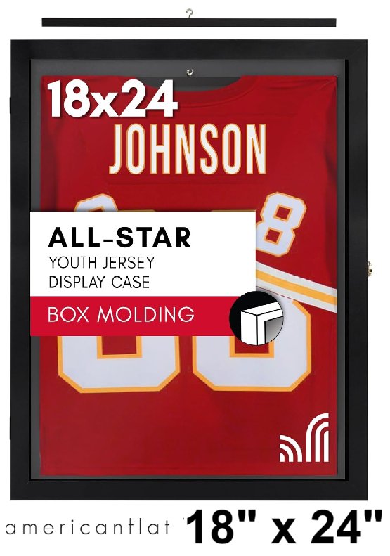 americanflat kids jersey frame display casen with lock and hook-18" x 24" -black-(model:‎ JRSYDC1824BLK)