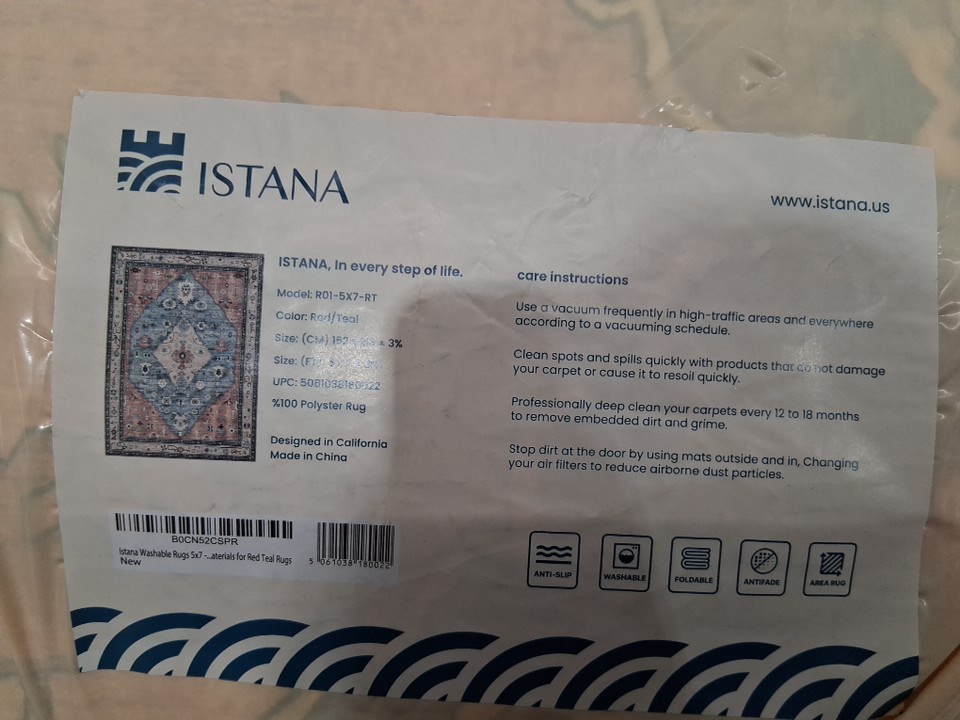 ISTANA washable area rug - 5ft x 7ft - red/teal - (style;R01-5X7-RT)