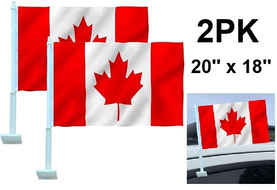 2PK canada Auto Car Flag with Window Clip - 20'' x 18'' - red/white
