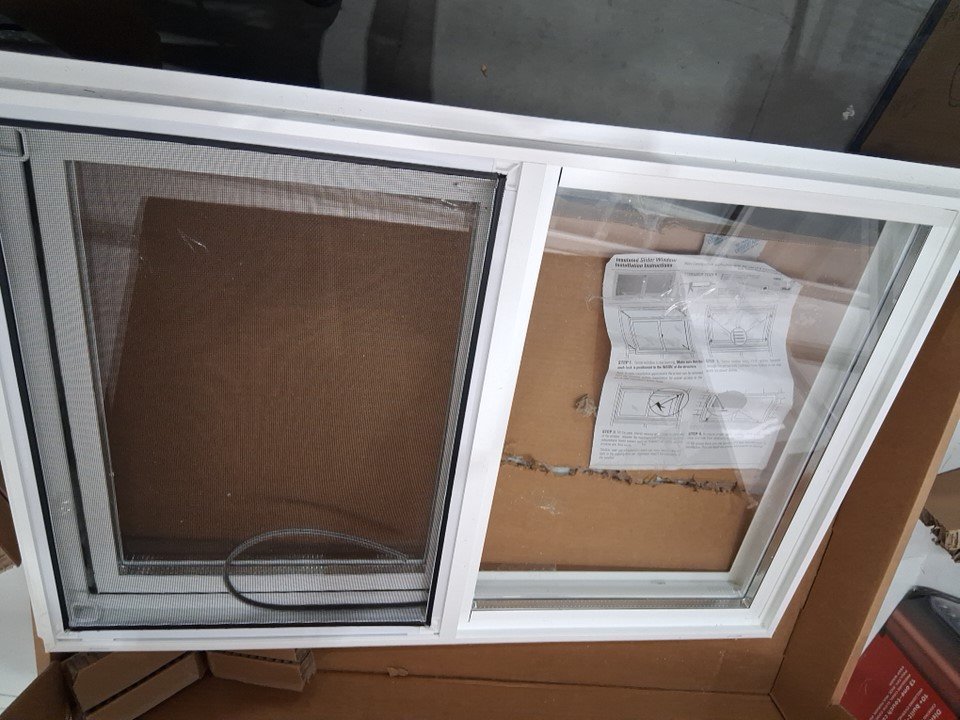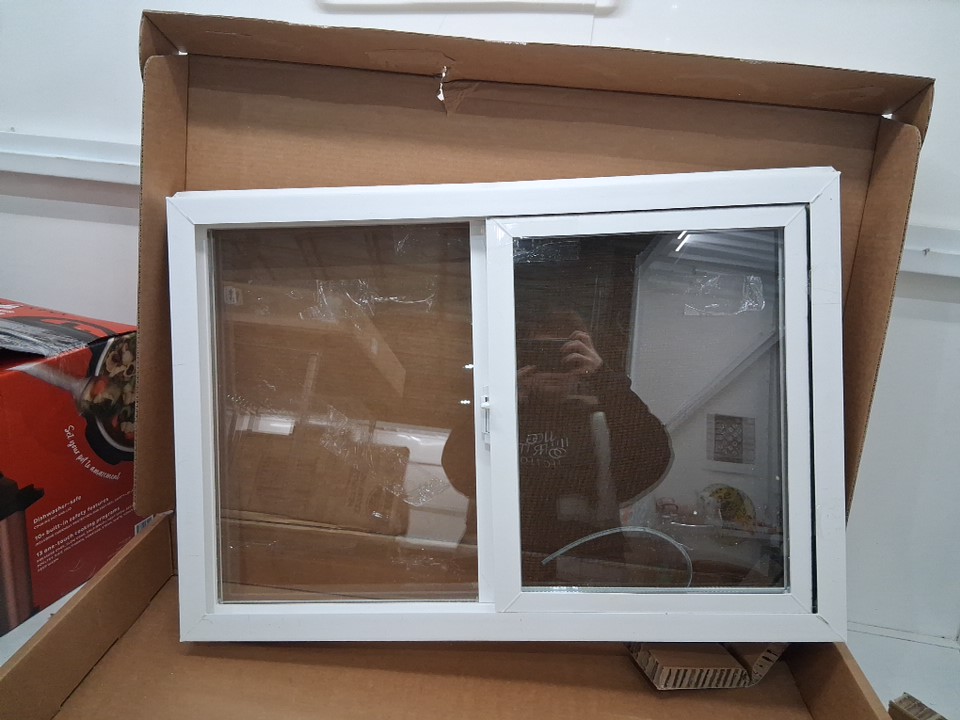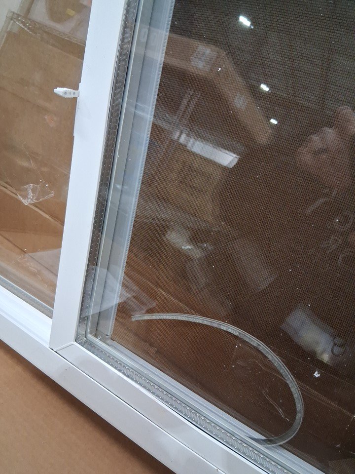 Window has tape stuck on it. Seal on edge of window(in middle) has come off and will need to be replaced. One side of frame is cracked
