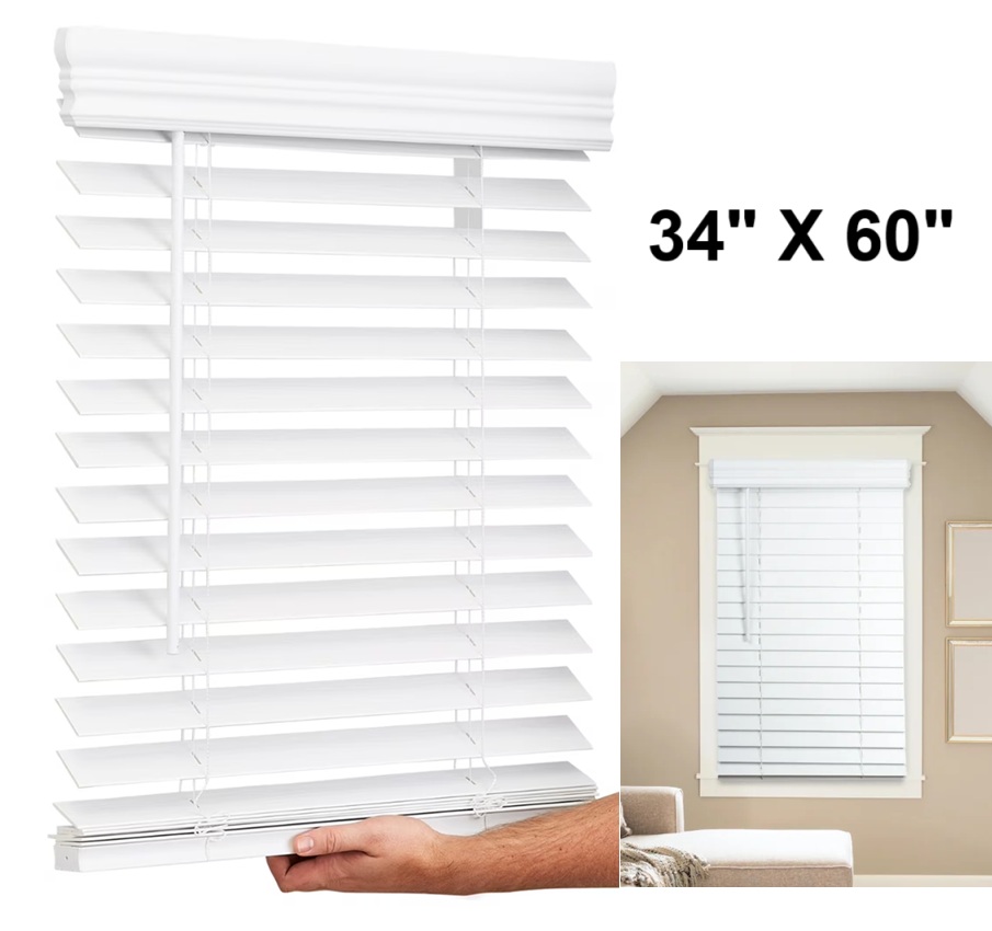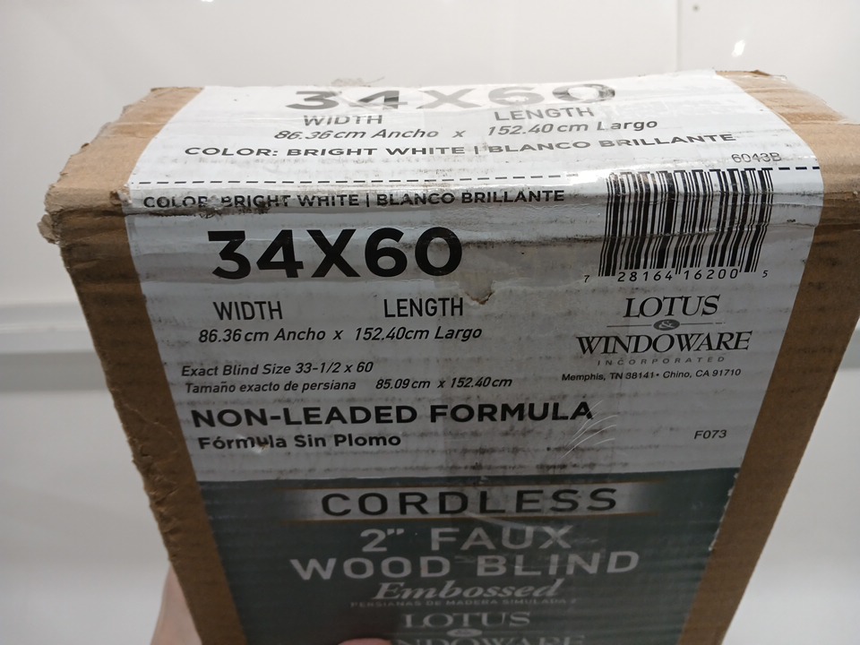 Lotus & Windoware Cordless Faux Wood Room Darkening Horizontal Blind - 34" x 60" - White
