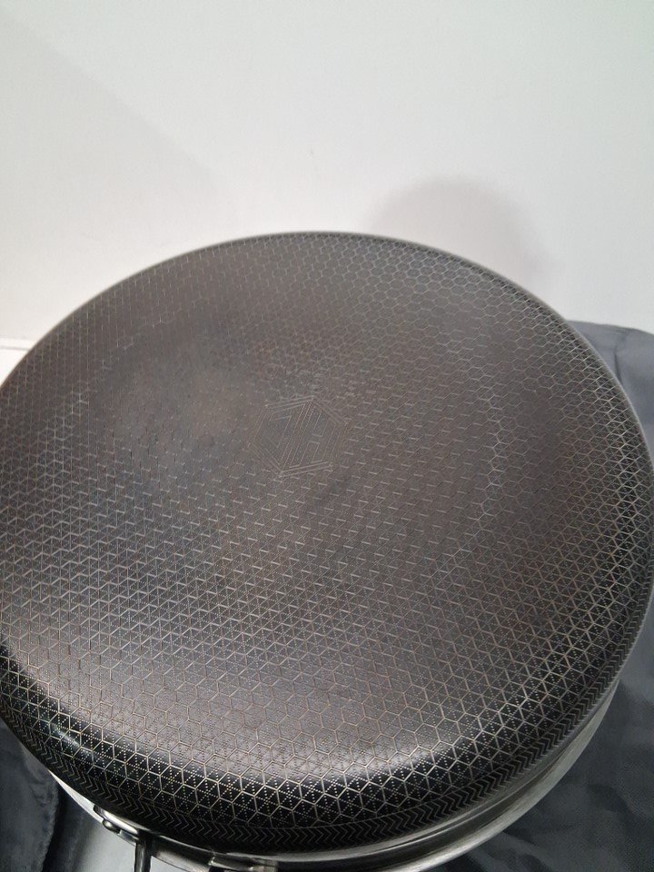 Some light discolouration on bottom and inside pan from prior use- smudges on lid