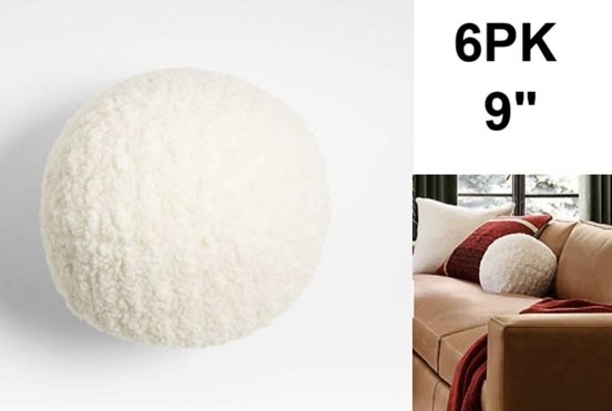6PK Snowball Sherpa Holiday Throw Pillow - 9" - IVORY (MODEL: 234 25 5792)