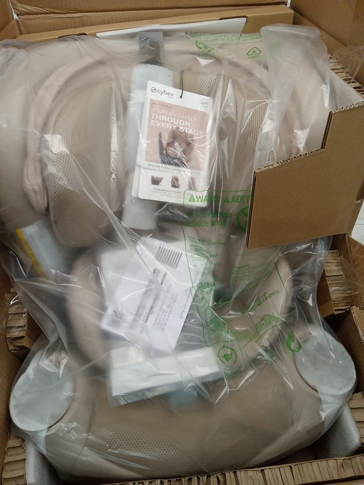 Box is open but factory foam and tags still attached along with stuffing in the cup holders, suggesting it is still new.
