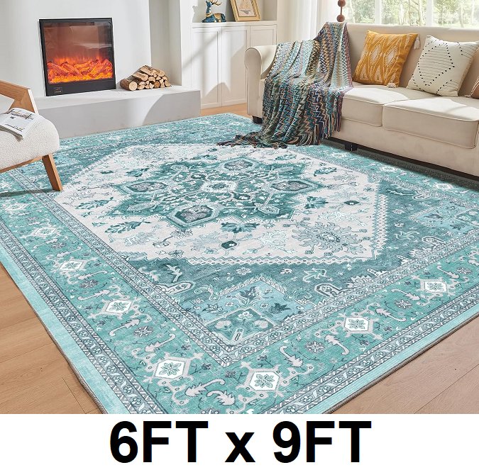 OPPODREAM THIN MACHINE WASHABLE NON-SLIP AREA RUG - 6FT X 9FT - TEAL