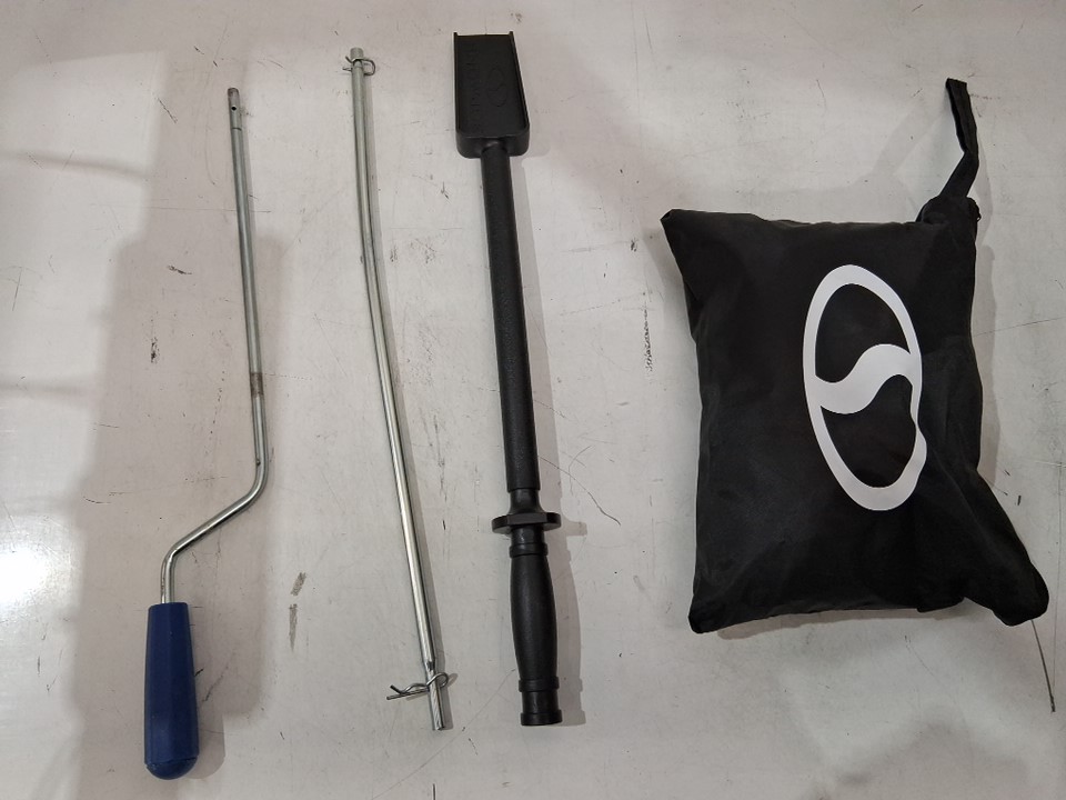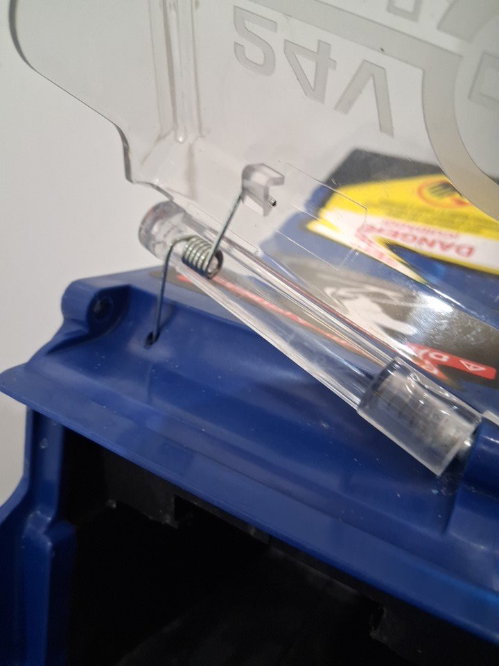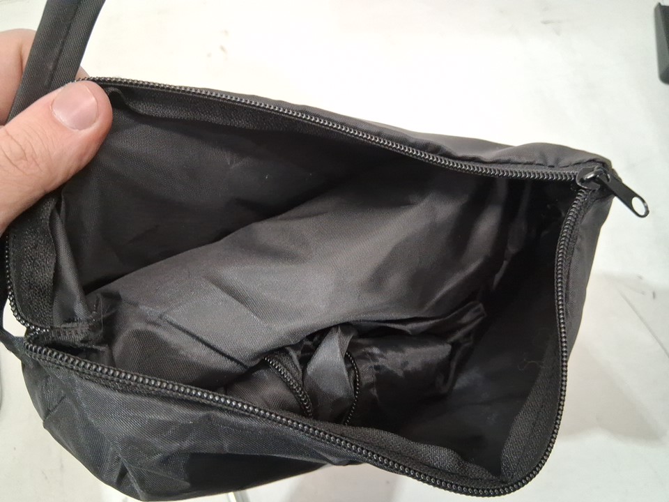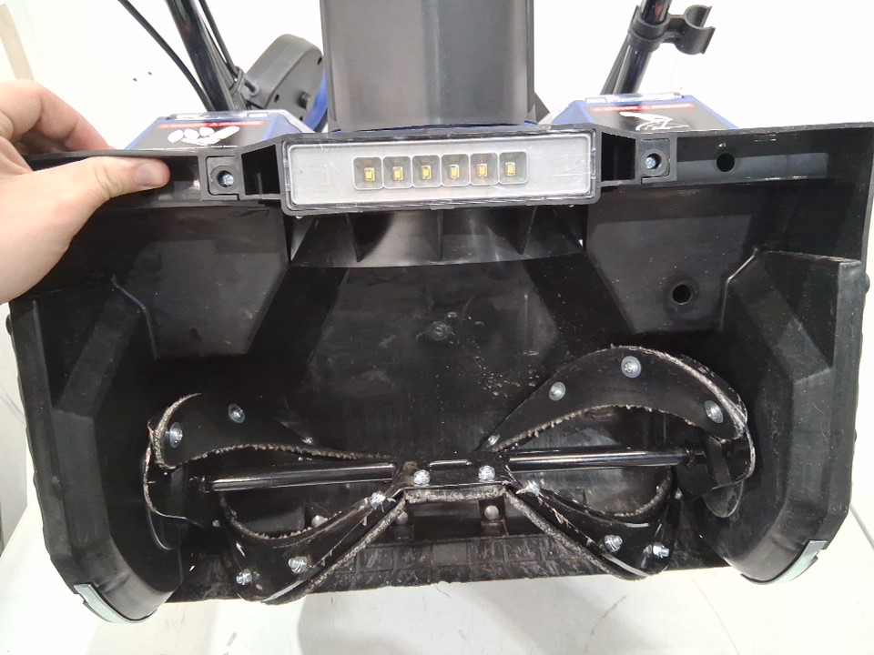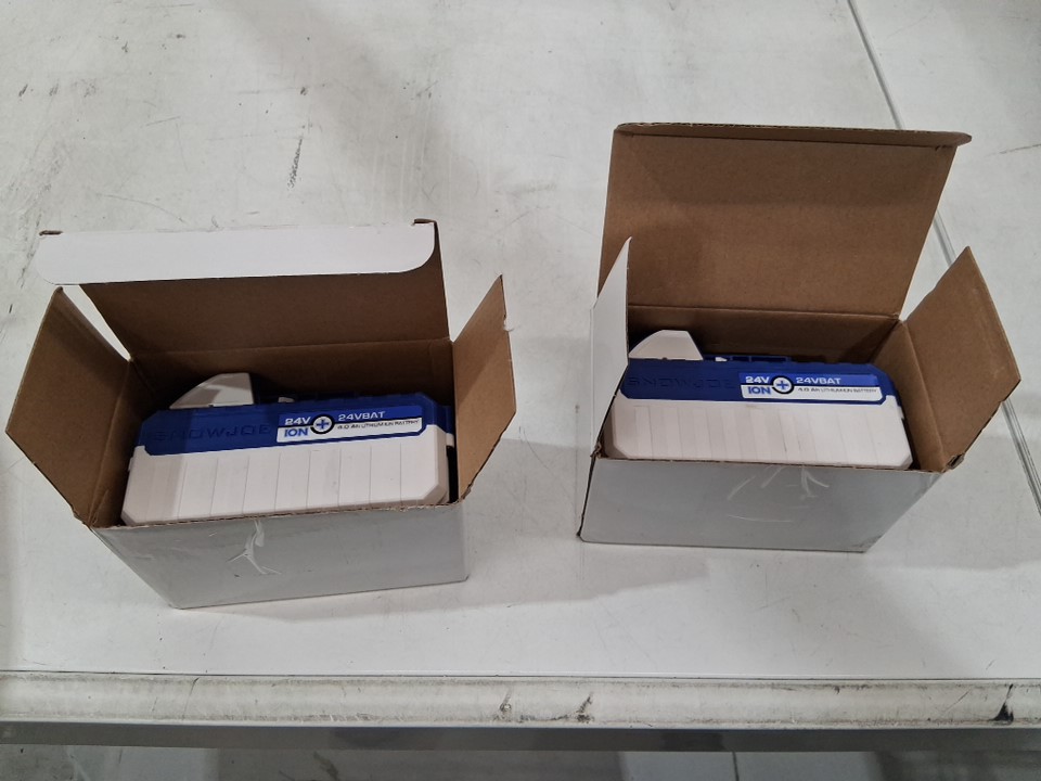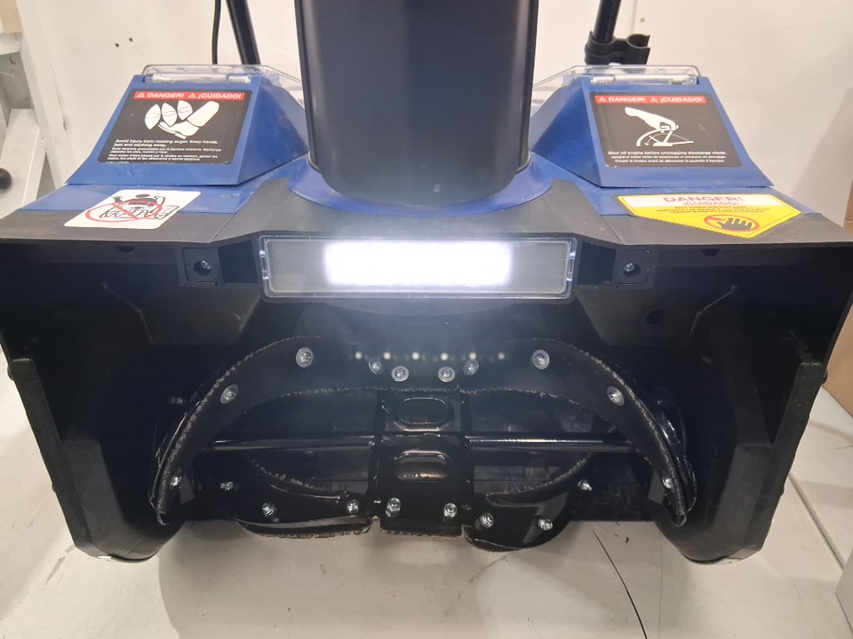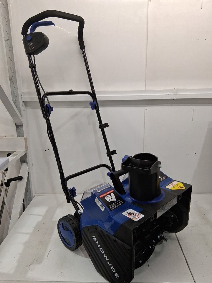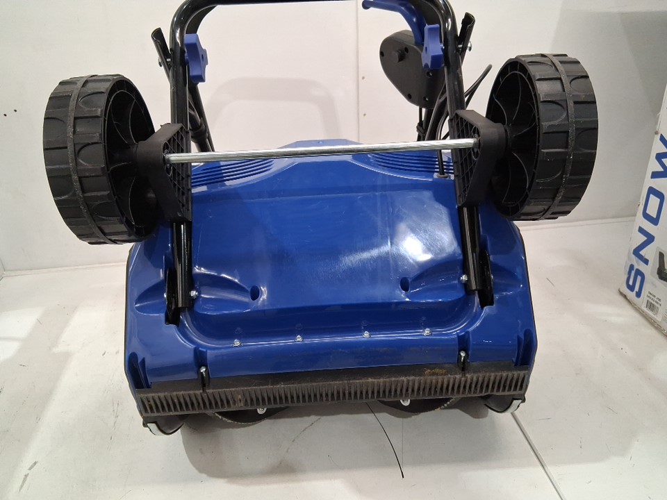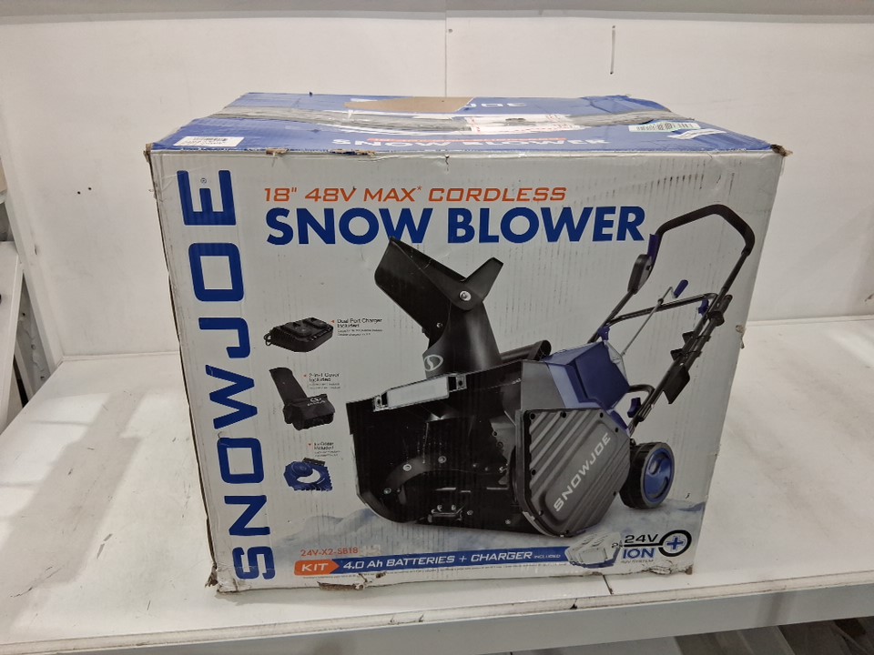 The cord leading to the power switch has a small cut in it which appears to be severing one of the internal wires. In spite of this, the blower appears to function normally, but repairing the wire is likely a good idea in order to avoid any further damage or issues with operation. One of the battery compartment covers is also coming slightly loose, and one part of the blade appears to be slightly bent out of shape. Additionally, there is a fair amount of dirt/moisture stains on and around the blade, as well as on the exterior of the machine including inside of the battery compartments, indicating prior use - please see photos. Tested for power and basic function, charger and batteries also appear to function and charge as normal.