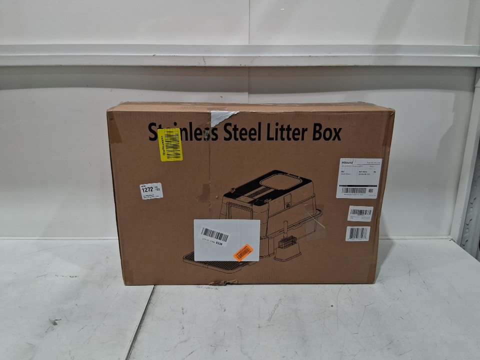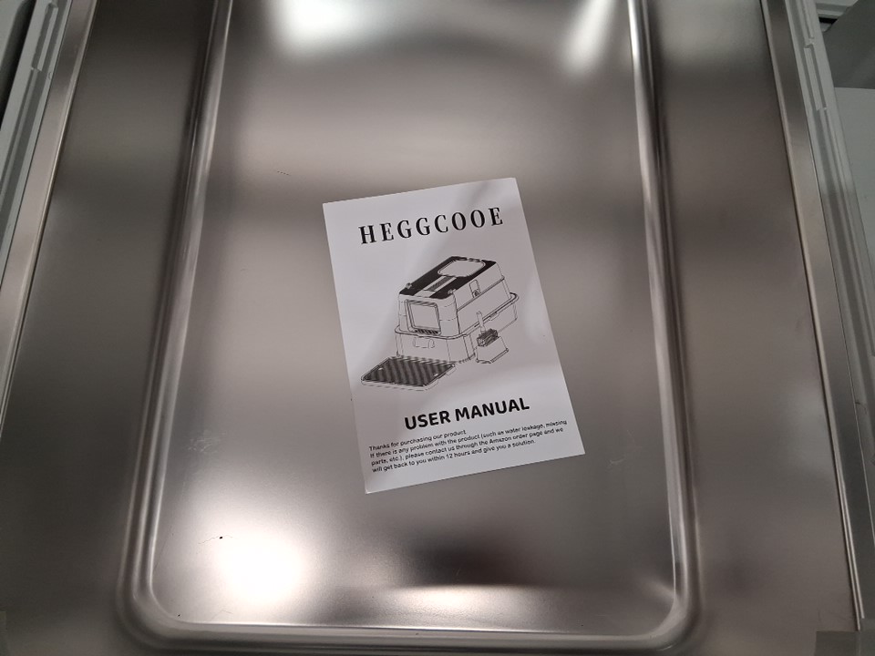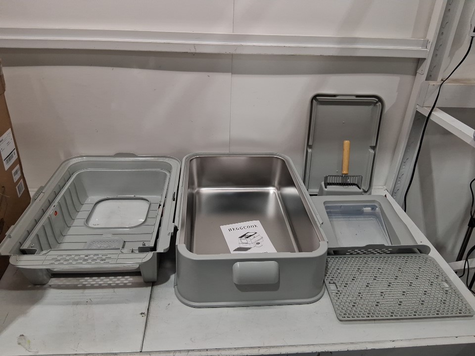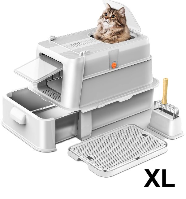 enclosed stainless steel cat litterbox with top exit and drawer-23.6" x 15.74" x 15.74"-light grey