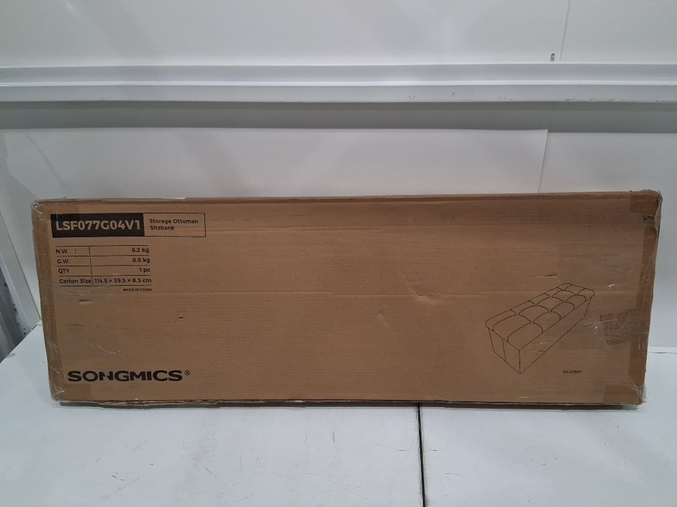 songmics mazie collection folding storage ottoman bench - 660lb max - 43" - light grey (model: LSF077G04V1)