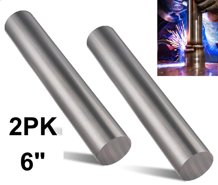 2pk Rocaris Carbon Steel Round Rod - 6" - silver (model:R-376)