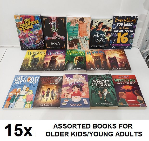 15 ASSORTED BOOKS FOR OLDER KIDS/YOUNG ADULTS OF VARIOUS GENRES **SEE PHOTOS**