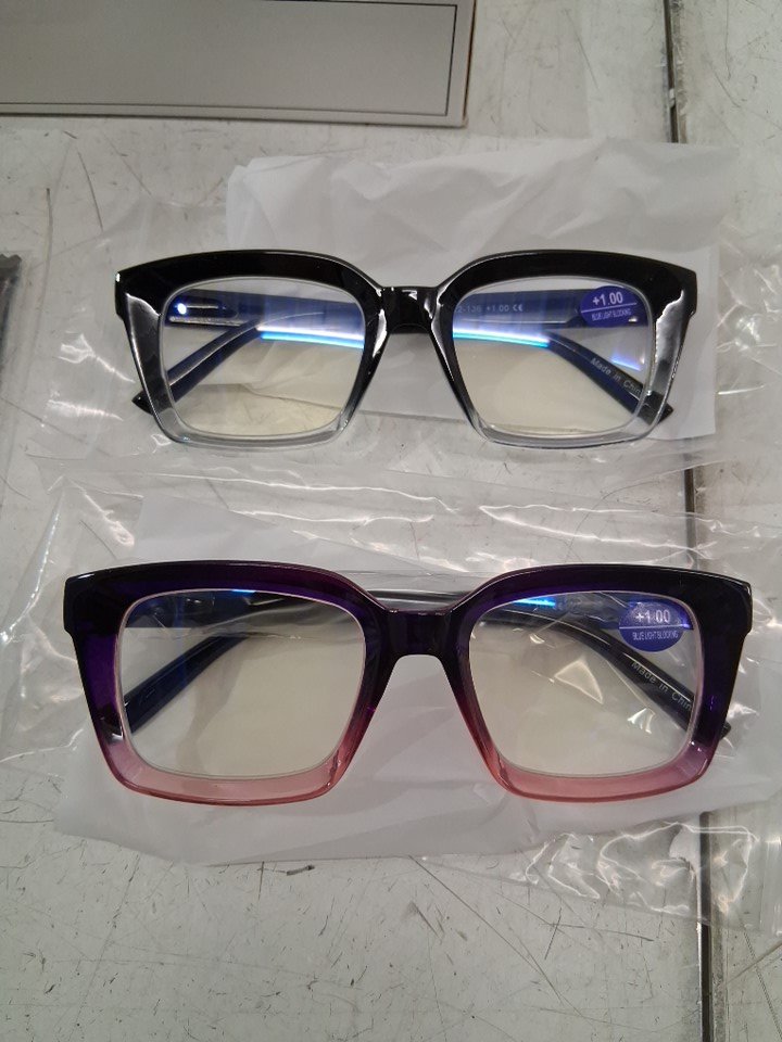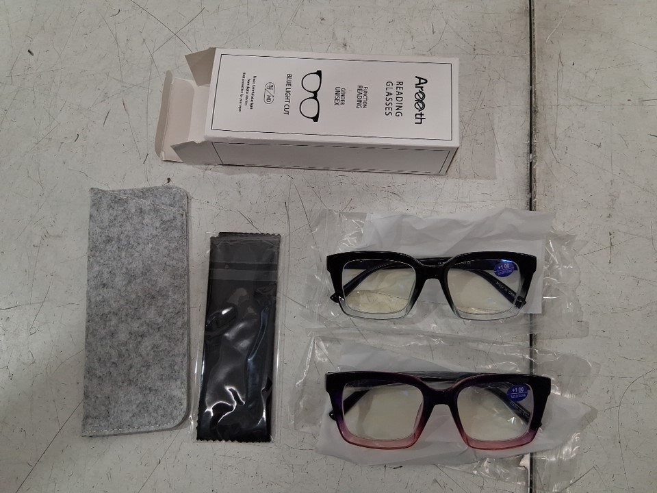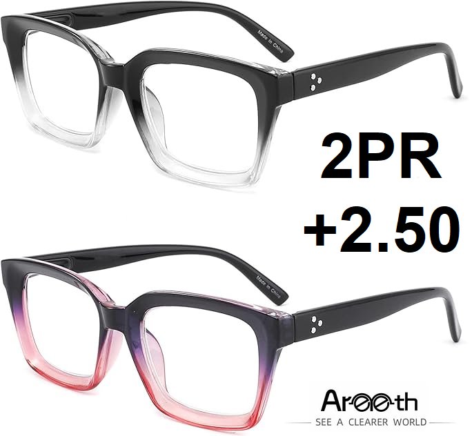 2pr womens areyeth retro oversized blue light blocking reading glasses - +1.00 - black/transparent & black/pink