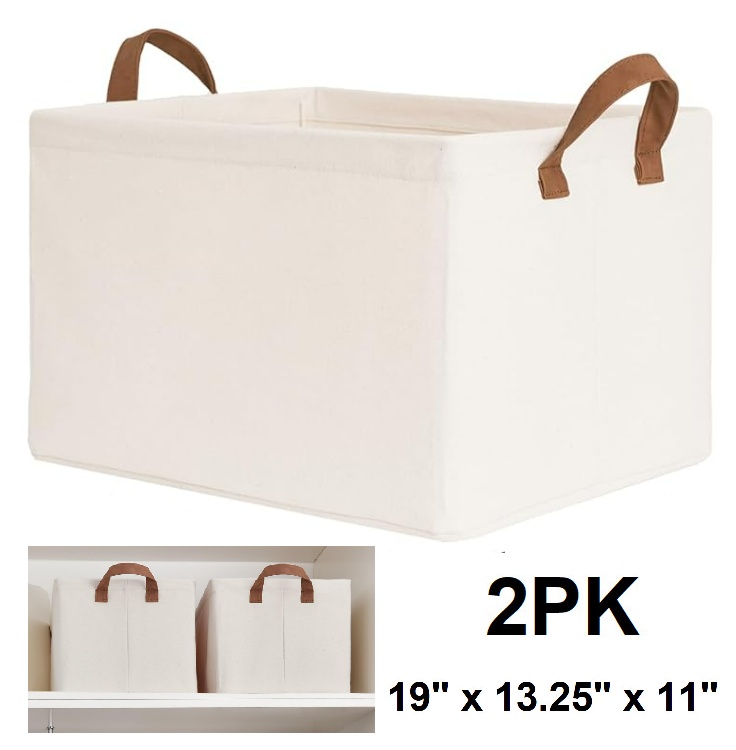 2pk storageworks fabric storage bins with handles - 45l - 19" x 13.25" x 11" - cream