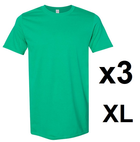 3 Gildan Soft Style Short Sleeve T-Shirt - Extra Large - Green