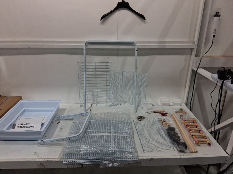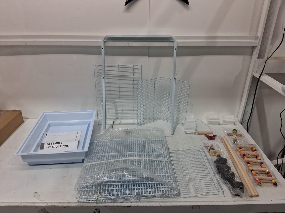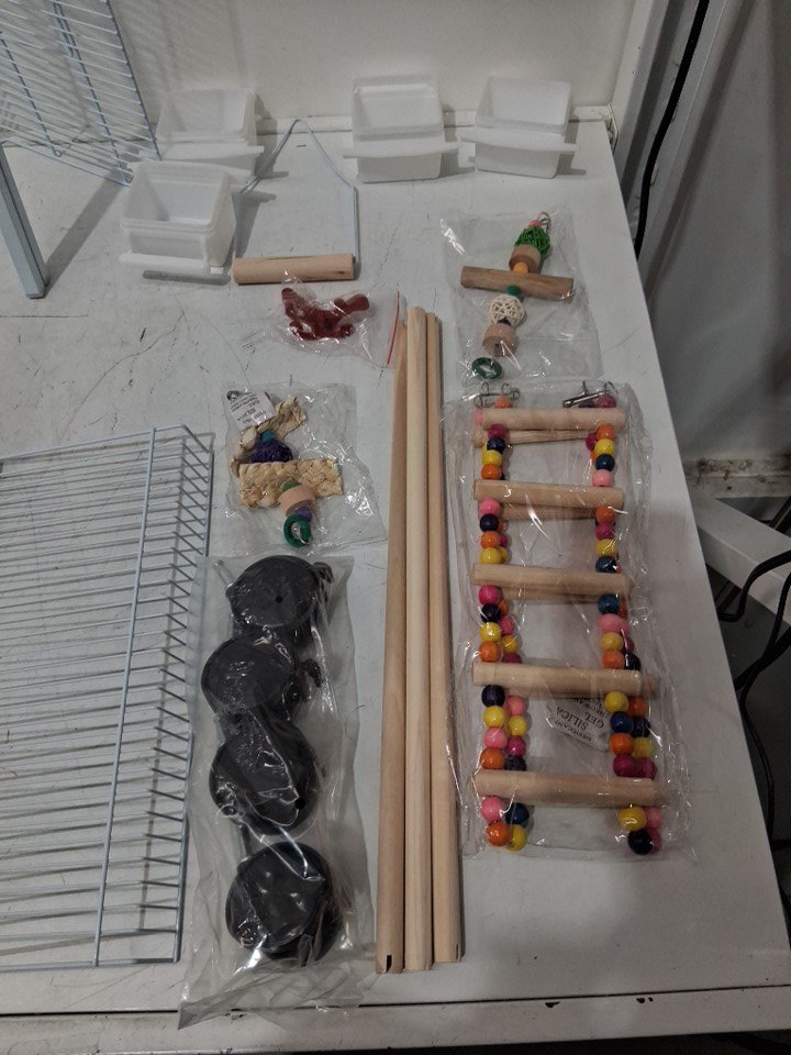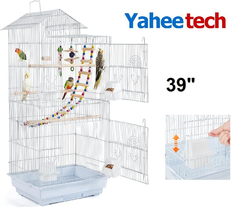 YAHEETECH ROOF TOP BIRD CAGE FOR SMALL BIRDS WITH TOYS & FEEDER DOORS, 39", WHITE (MODEL:591471)