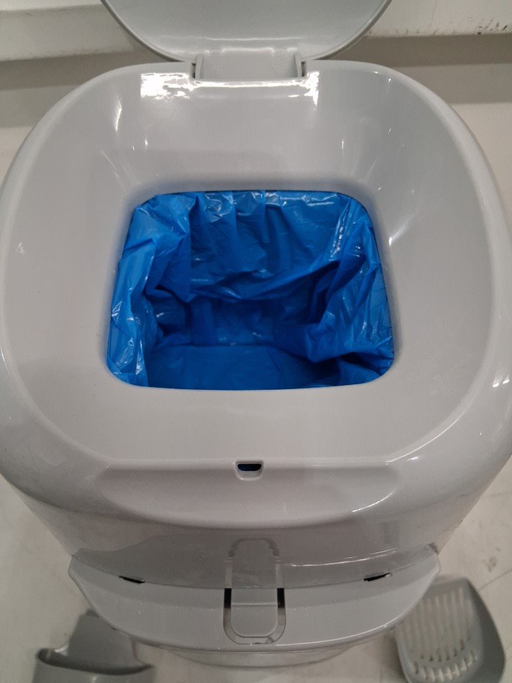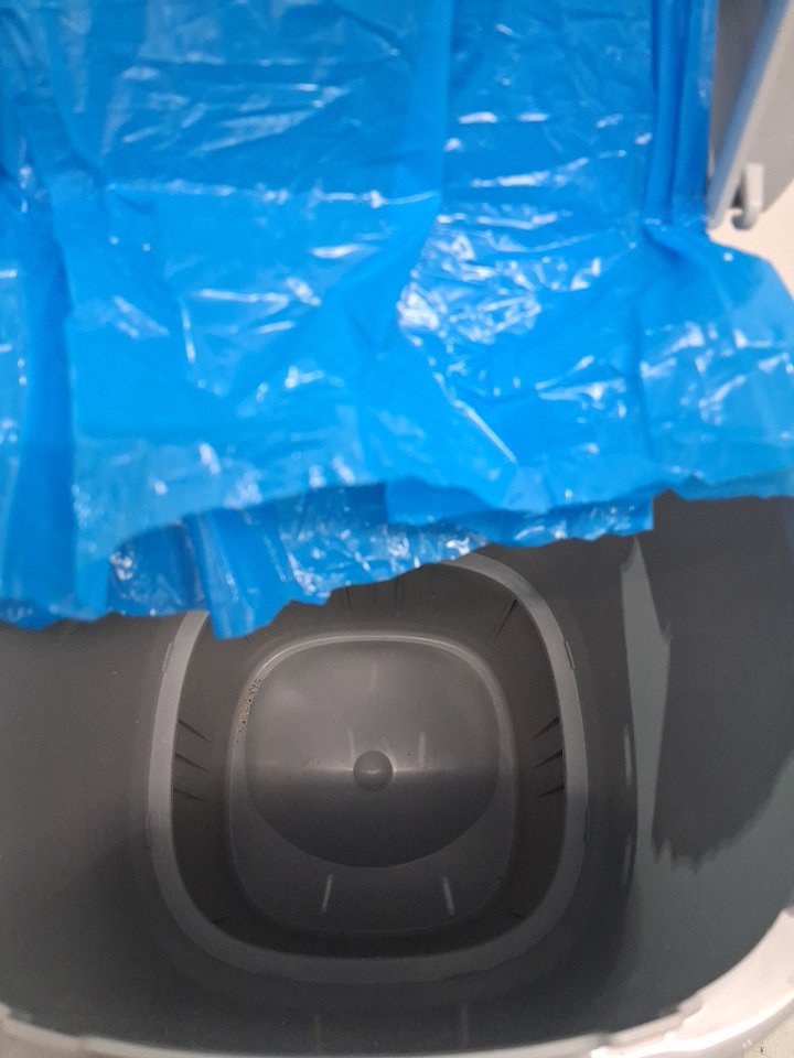 Litter residue at bottom of genie and refill bag installation indicates prior short-term use. (See photos)