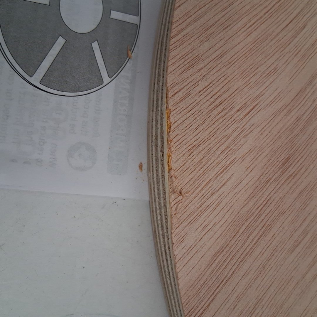 There is a small spot along the edge that has splintered a bit. (see photos)