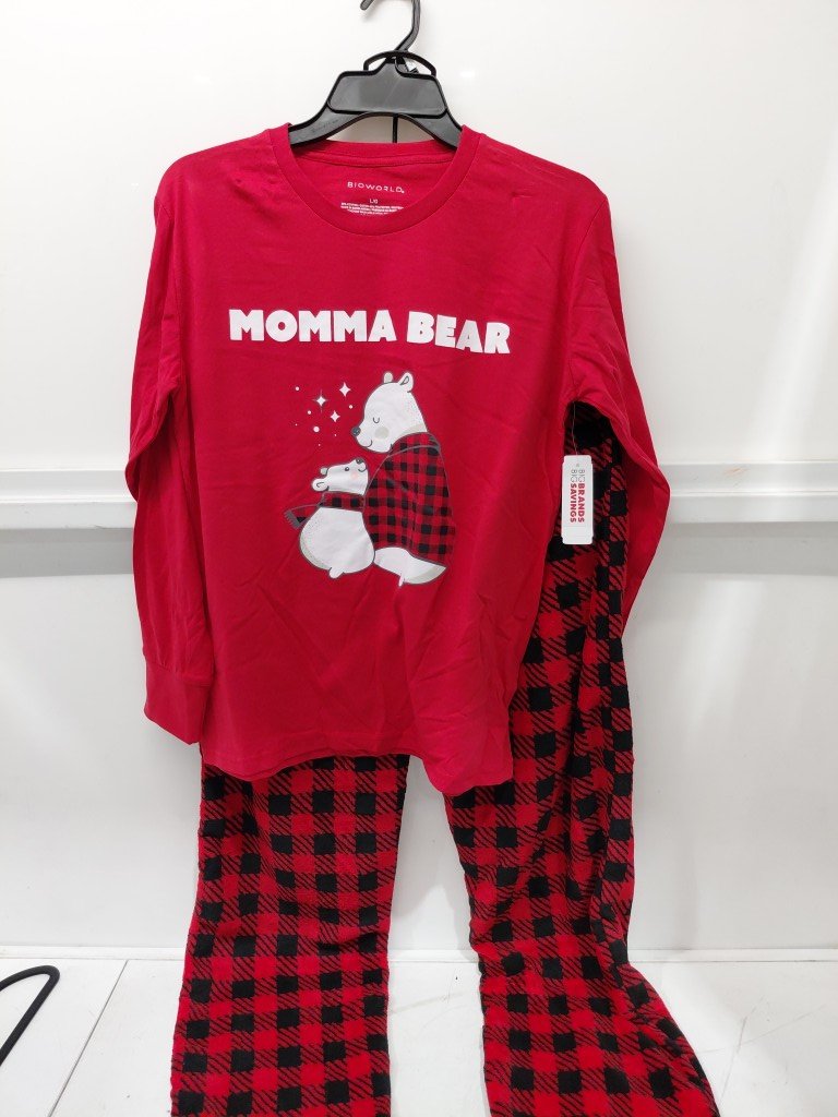 2PC WOMEN'S " MAMA BEAR" pajama set - large - red