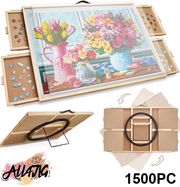 ALL4JIG 1500PC 2-in-1 Tilting & Rotating Puzzle Board with Lazy Susan and Cover - 26.4" x 34.4" - WOOD