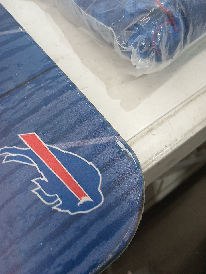 there are some scratches on the end of the boards, but other then that it's never been used and is in good shape. please see photos