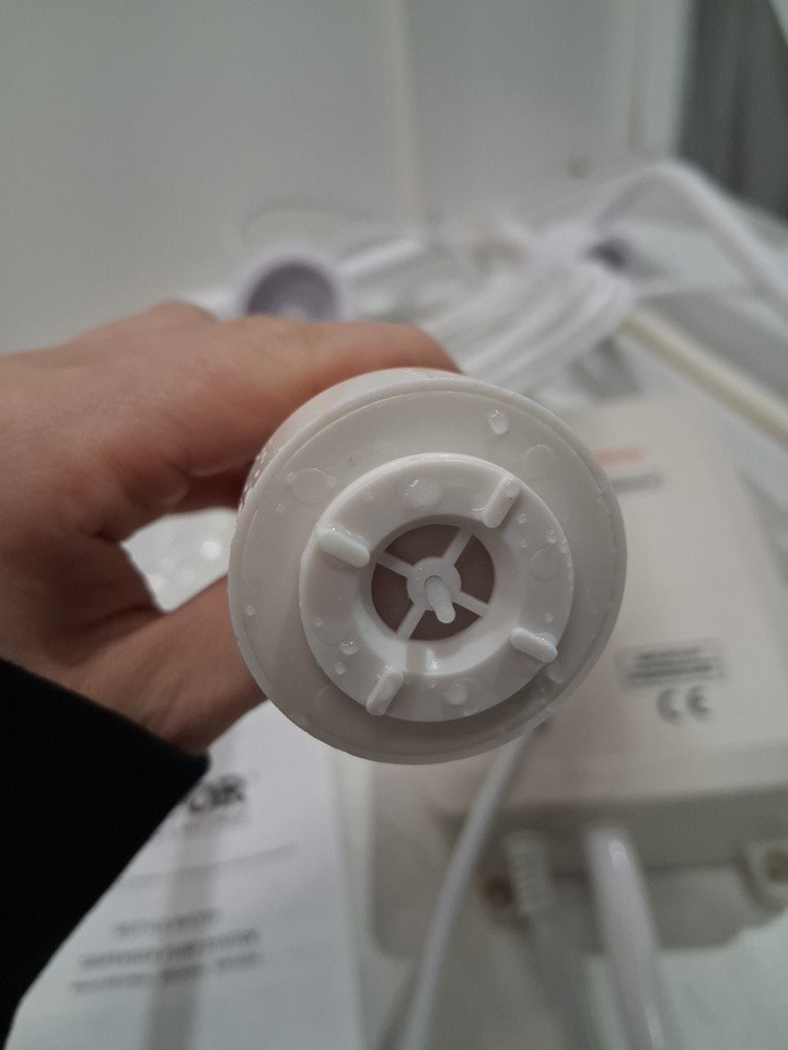 There is some water residue and when tested for power there is water in the dispenser, see photos.