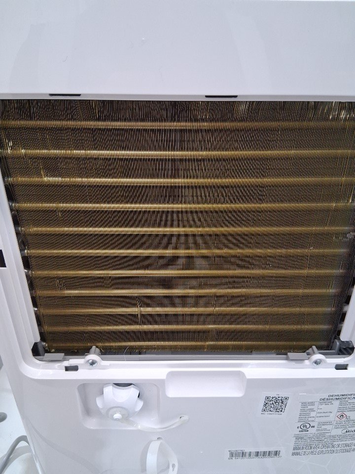 The back vents are slightly dented, and there is some dust on the inside of the water tank as well as some tape marks on the exterior of the machine, but these blemishes are likely the result of manufacturer testing and handling as the filter is still clean and there are no clear signs of previous ownership - see photos. Tested for power and basic functionality.