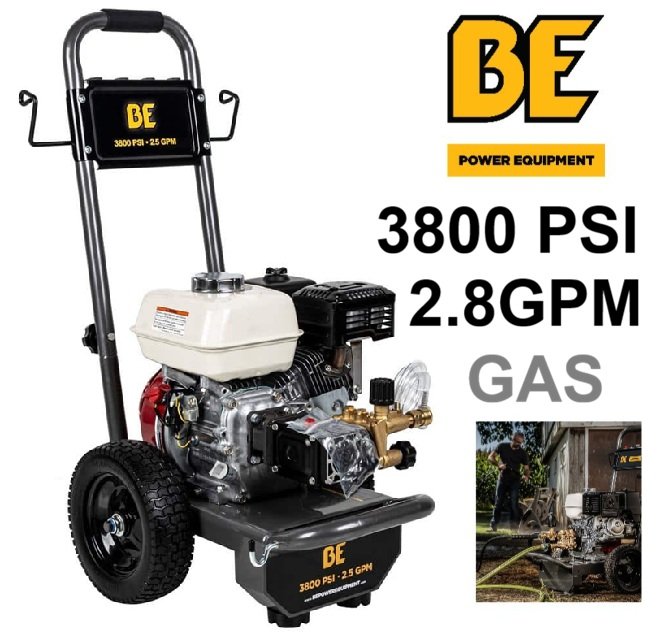 BE Cold Water Gas Pressure Washer Honda GX200 Engine and AR Triplex Pump - 3800 PSI 2.8 GPM - GREY (MODEL: B3865HA)