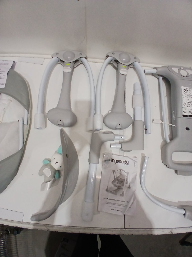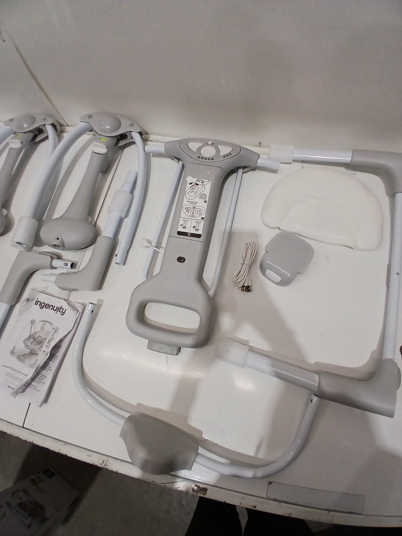 0-9 months INGENUITY ConvertMe 2-in-1 compact portable plug-in automatic baby swing & Infant Seat- 6lbs to 20lbs - grey (model: 12189-es)