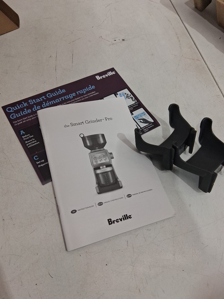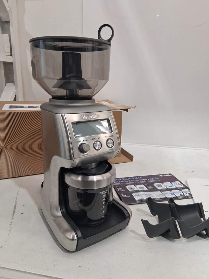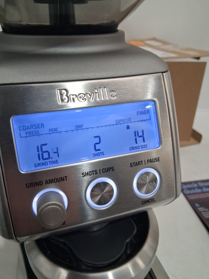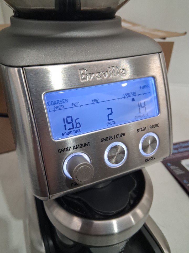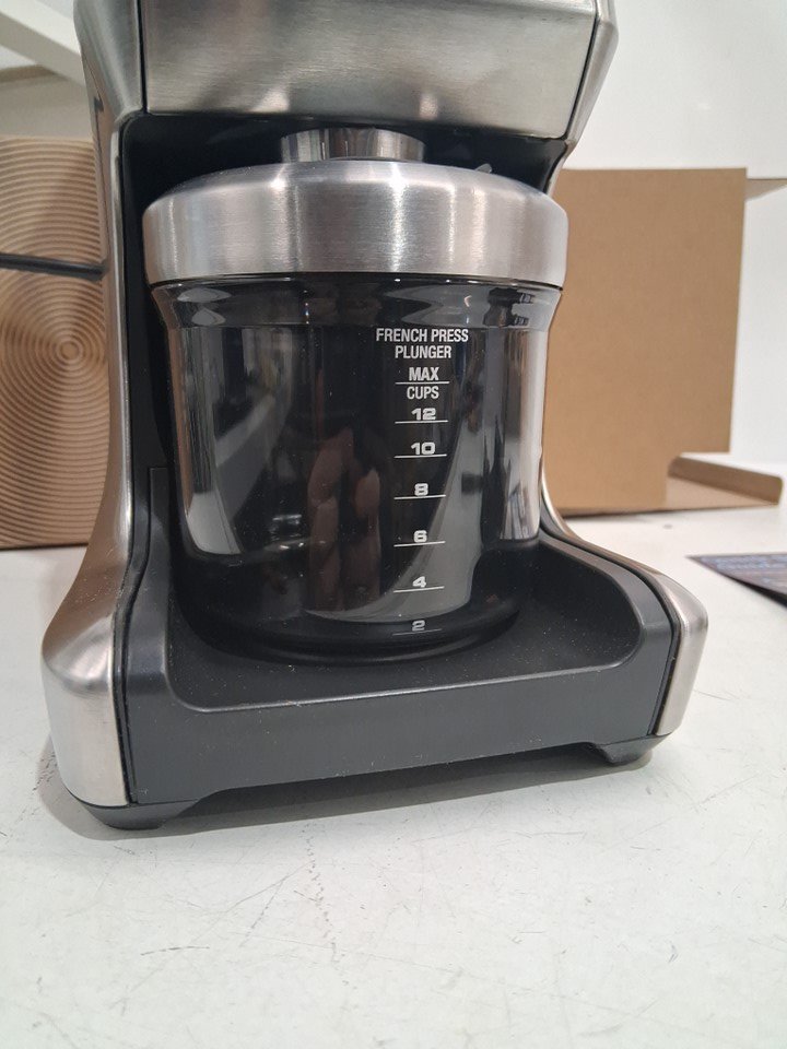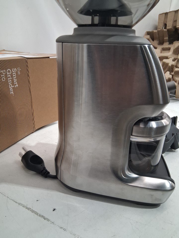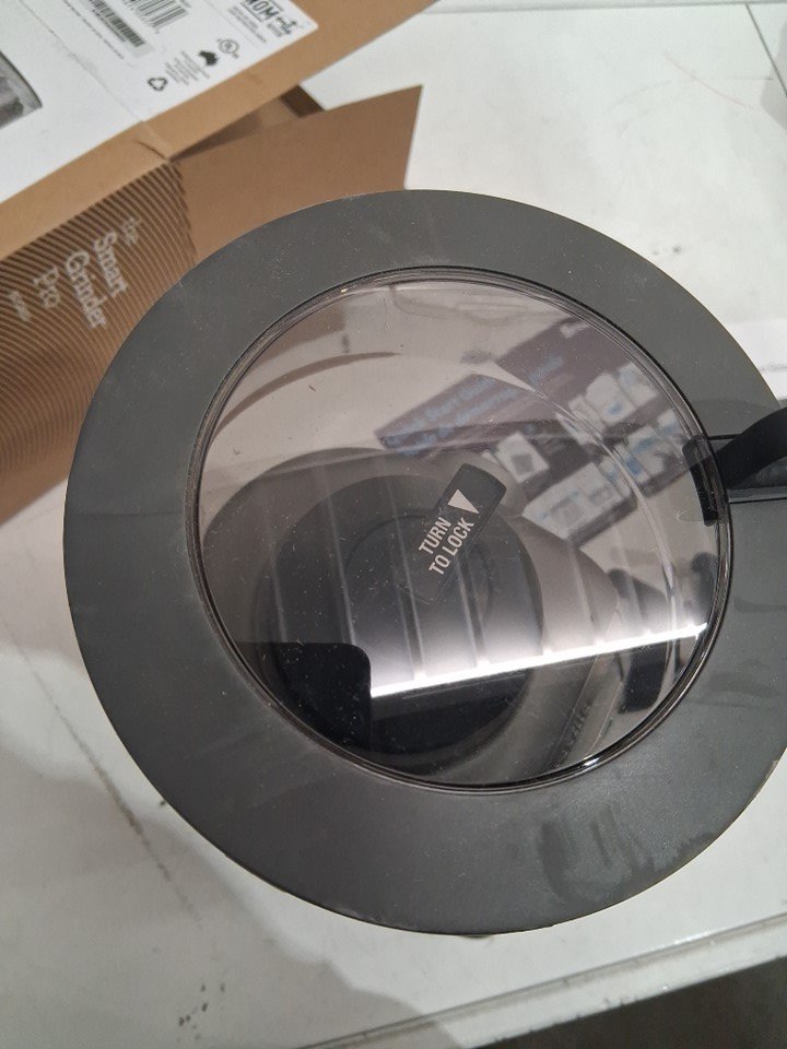 Tested for power, scuffs on lid, stainless steel touch marks, coffee grounds in box show signs of use on this item.