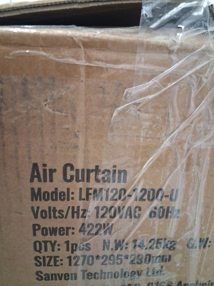Air curtain has black residue on back from previous use. HAs been tested (no indicator light)