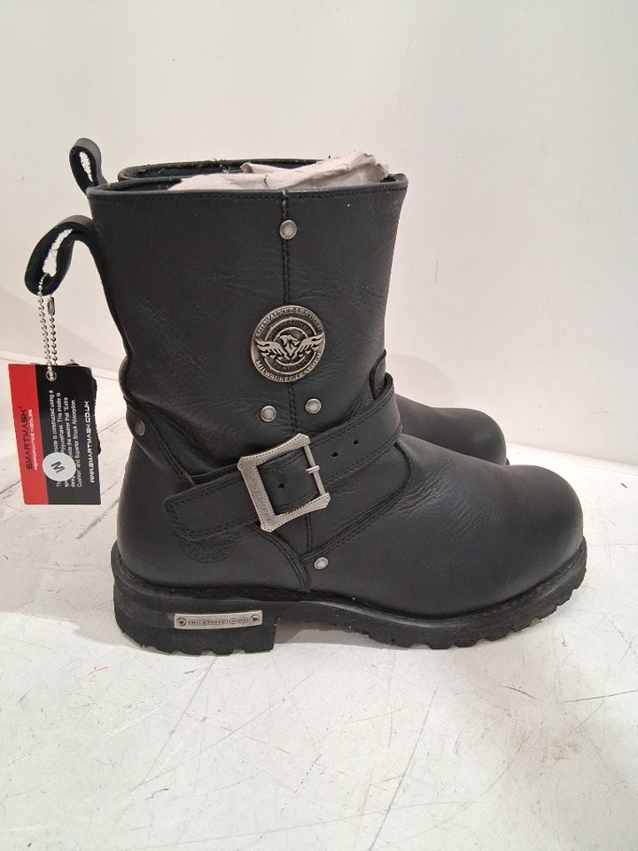men's Milwaukee Leather Wide Width Classic Engineer Motorcycle Boots with Side Zipper - 10 - black (style: mbm9040w)