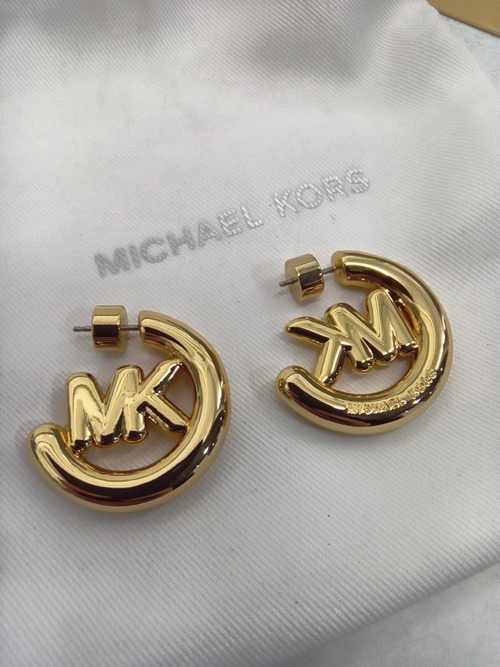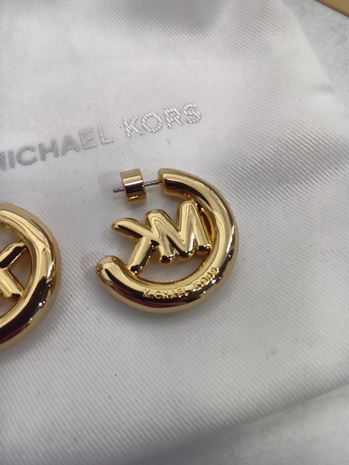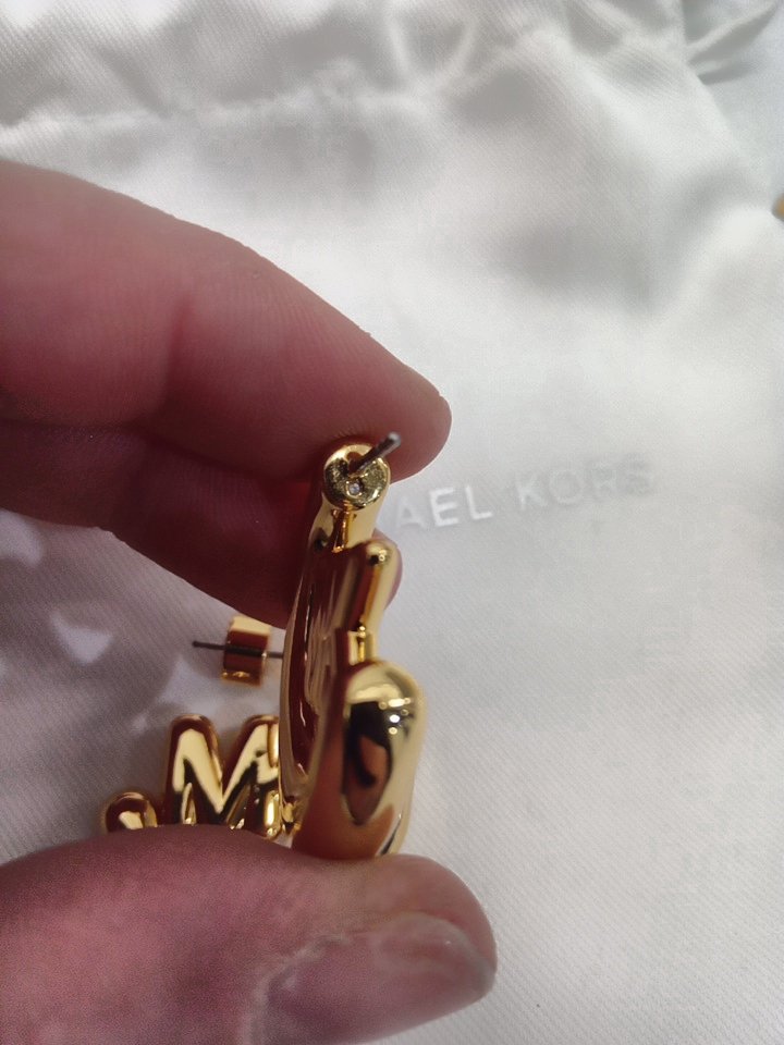 WOMENS michael kors large logo charm hoop earrings - 1.2"l- gold colour