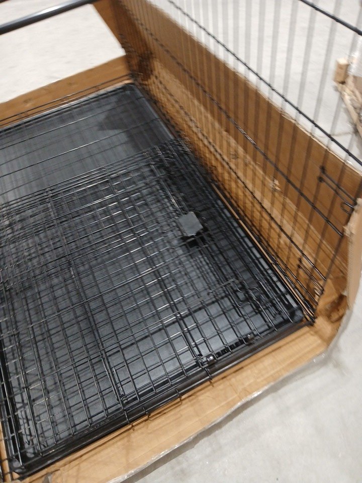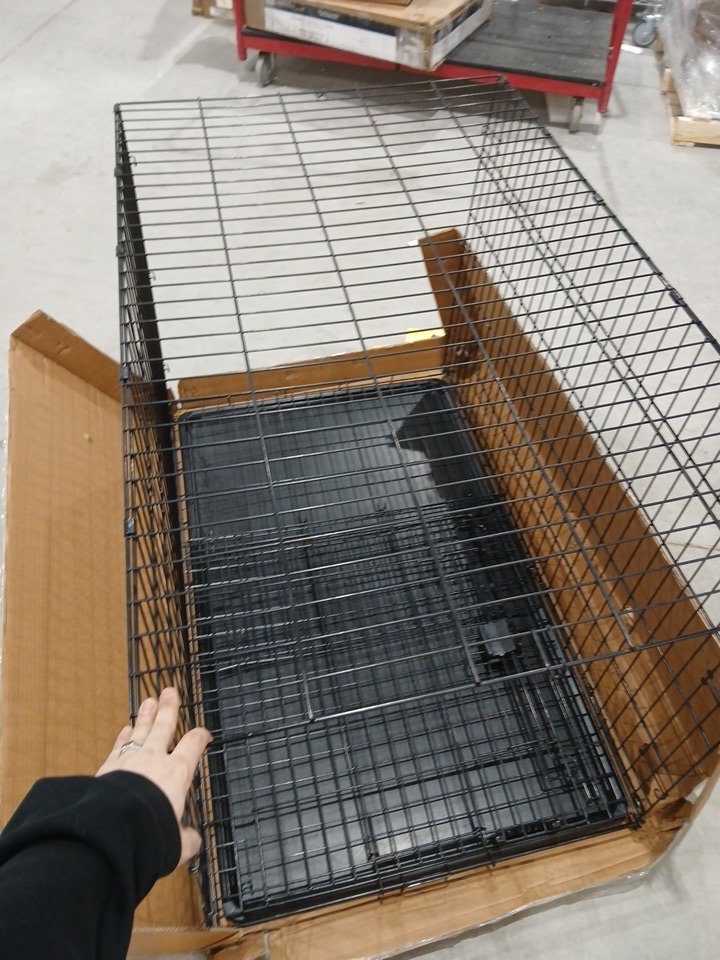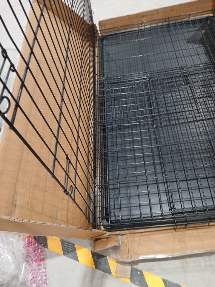 METAL DOG CRATE WITH PLASTIC TRAY INSERT - 4FT X 30" X 38" - BLACK